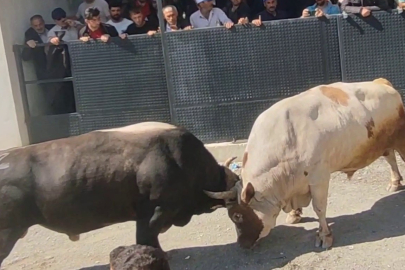 Artvin’in Yusufeli ilçesinde düzenlenen boğa güreşlerinde korku dolu anlar yaşandı. Güreş sırasında kontrolden çıkan boğalar, sahayı çevreleyen demir kapıyı kırarak alandan dışarı çıktı. Boğaların aniden saha dışına çıkmasıyla birlikte seyirciler panik içinde kaçışmaya başladı. Saha dışında da güreşmeye devam eden boğalar, çevredeki halatları ve direkleri kopararak yola çıktı. Mücadelelerini sokakta sürdüren boğalar, park halindeki bir araca birbirlerini sıkıştırdı. Olay yerine koşan vatandaşların yoğun çabası sonucu boğalar birbirinden ayrıldı.