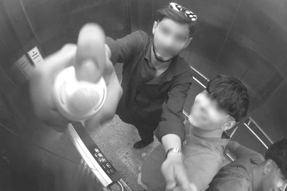 Kocaeli’nin Körfez ilçesinde üst geçit asansörüne binen 2 kişiden 1’i, güvenlik kamerasına köpük sıktı. O anlar güvenlik kamarasına yansıdı.