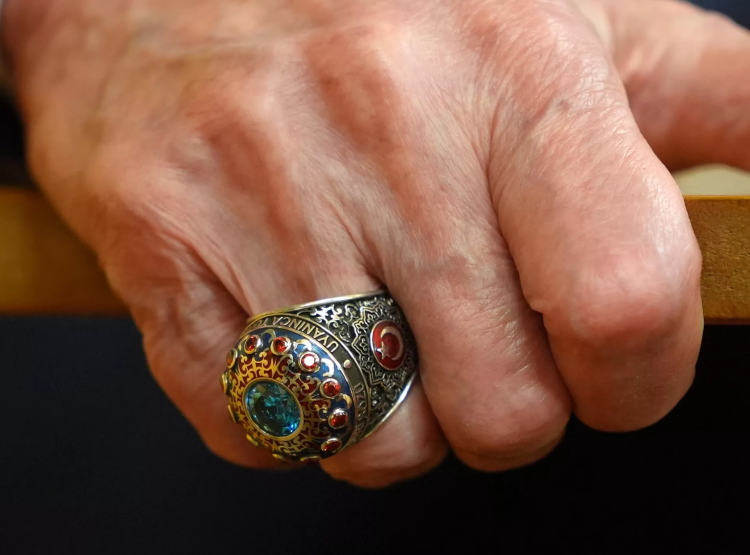 MHP Genel Başkanı Devlet Bahçeli'nin, TBMM Grup Toplantısı'ndaki konuşmasına, taktığı yüzük ve rozetteki mesaj damga vurdu. Bahçeli'nin özel tasarım yüzüğü ile rozetinde, şair ve yazar Niyazi Yıldırım Gençosmanoğlu'nun 'Meydan' şiirinden alıntılanan "Uyanınca Türk'ün özü, gerçekleşir Tanrı sözü" ifadesi yer aldı.