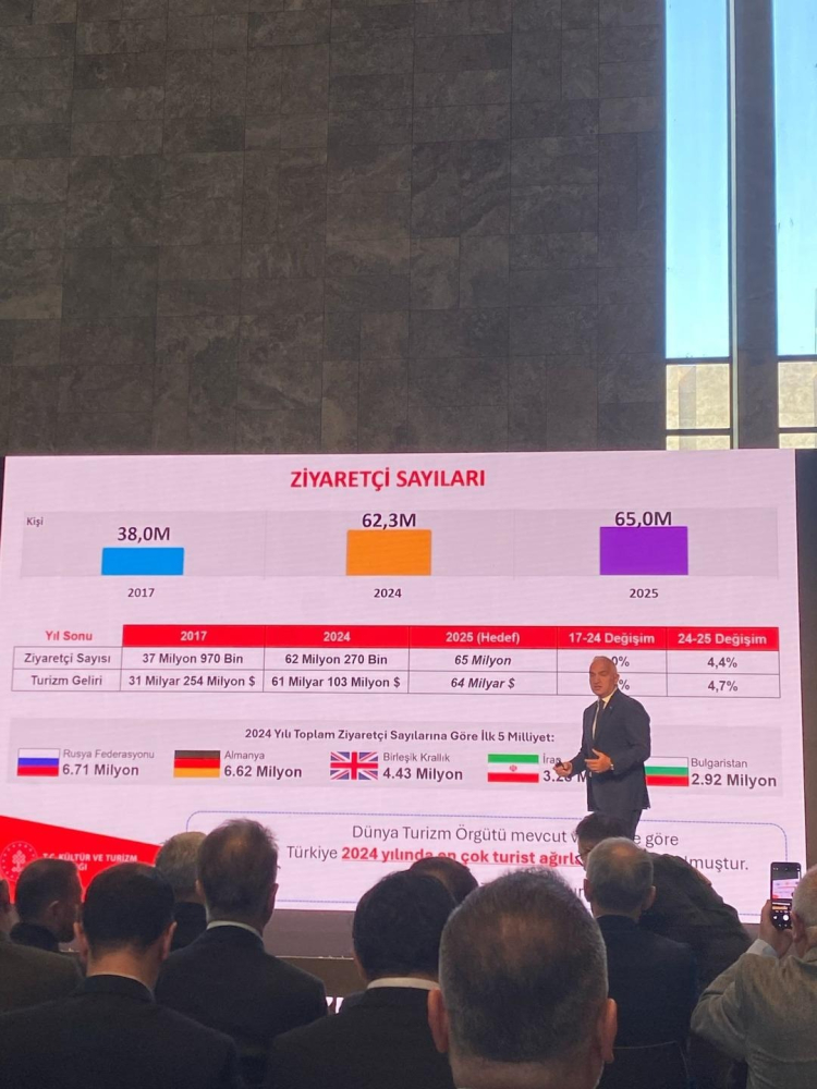 Bakan Ersoy 2025 yılı hedefini açıkladı: 65 milyon ziyaretçi, 64 milyar dolar!