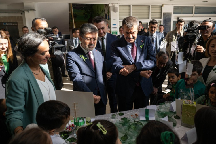 Okulda "Yeşil Vatan" temalı özel gereksinimli öğrenciler tarafından hazırlanan "Tohumu Bil" etkinliğine katılan iki Bakan, daha sonra Öğretmenler Odası'nda öğretmenlerle görüştü, taleplerini dinledi.