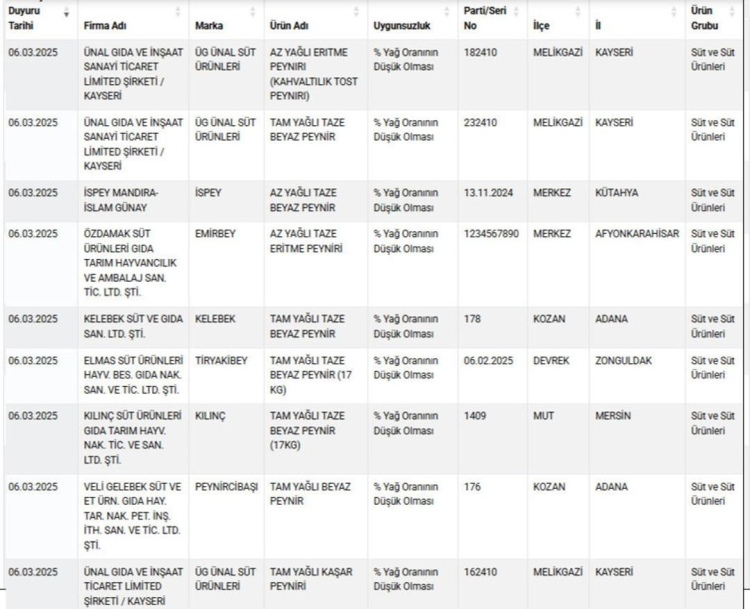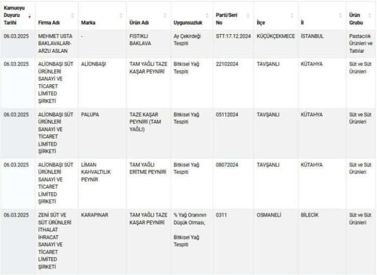 Yeni listede yine tepki çeken ürünler yer aldı. 6 Mart 2025 tarihli güncellenen listede pek çok yeni marka ve üreticinin, tüketicilerin güvenini sarsan skandalları bir kez daha ortaya çıktı.