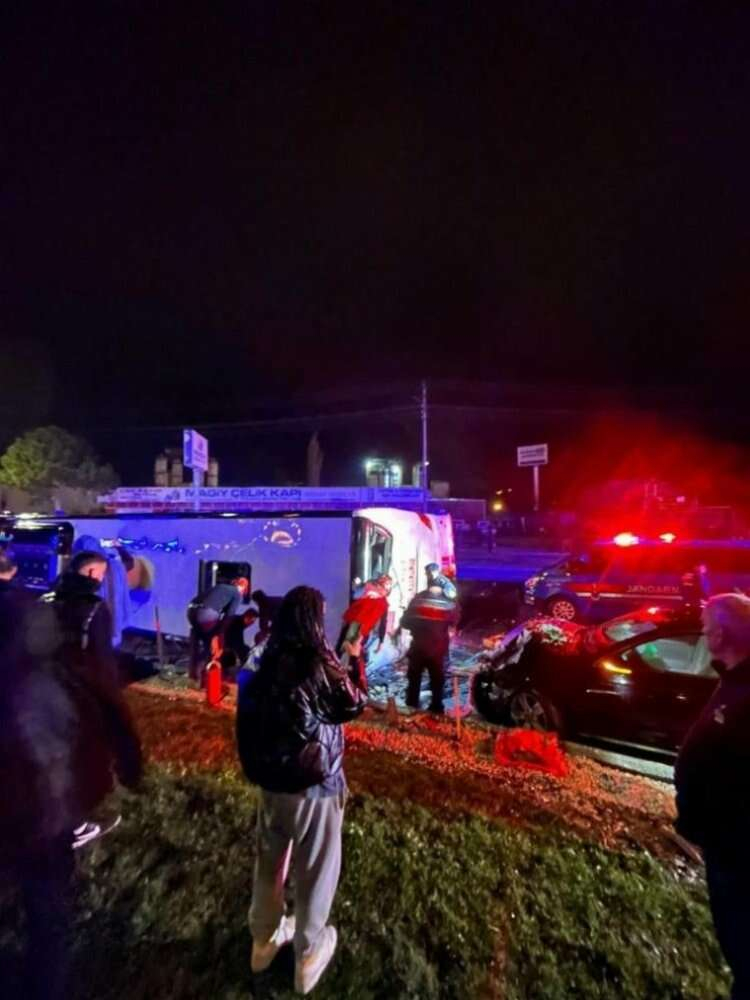 Çarpışmanın etkisiyle otobüsdevrildi. Devrilen otobüse ise bir başka otomobil çarptı. Kazanın ihbar edilmesinin ardından bölgeye çok sayıda ambulans, polis, itfaiye ve jandarma ekibi sevk edildi.