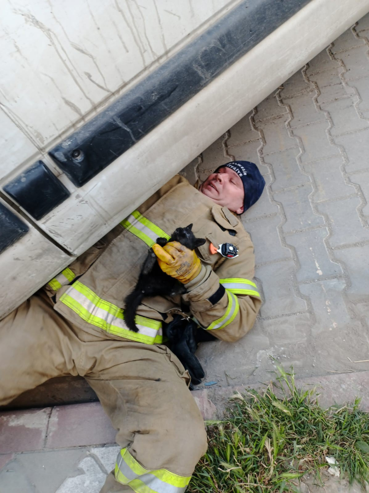 Edinilen bilgiye göre, bir vatandaşın ihbarı üzerine Zeytinli AltınkumMahallesi Lavanta Caddesi'ne gelen İtfaiye Daire Başkanlığı Edremit Grup Amirliği Akçay Müfrezesi ekipleri, aracın içine sıkışan yavru kediyi titiz bir çalışmayla bulunduğu yerden çıkardı. Kurtarılan yavru kedi, annesinin yanına götürüldü.