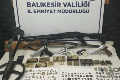 Balıkesir İl Emniyet Müdürlüğü Kaçakçılık ve Organize Suçlarla Mücadele Şube Müdürlüğü (KOM) koordinesinde Bandırma KOM Büro Amirliği ekiplerince Erdek ilçesinde düzenlenen operasyonda çok sayıda ruhsatsız silah, fişek ve tarihi eser ele geçirildi.