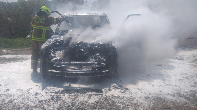 Balıkesir'in Gönen ilçesi Saraçlar mevkinde bulunan bir araçta çıkan yangın ekiplerce söndürüldü, araç kullanılamaz hale geldi.