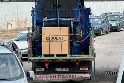 Bartın'da Orduyeri Caddesi'nden Kandırmak Caddesi'ne seyir halinde bulunan römork yüklü kamyon, Orduyeri Köprüsü'ne takıldı. Bölgedeki trafiğin kilitlenirken, polis ekipleri yolda güvenlik tedbiri aldı.