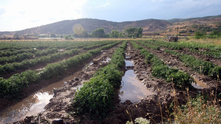 Kentte akşam saatlerinde etkili olan sağanak ve dolu yağışı, yaşamı olumsuz etkiledi. Merkez Ekinyolu Mahallesi’nde sağanak yağışın ardından yağan dolu nedeniyle, ekili tarım arazileri zarar gördü. Yaklaşık 50 yıldır çiftçilikle geçimini sürdürdüğünü belirten HalimAkgök, 100 dönümlük alanda ektiği sebze ve meyve fidelerinin yağışta zarar gördüğünü belirterek, “Karpuz, kavun, domates, biber, salatalık hepsi vardı. Alan 100 dönümden fazla ancak benim ektiğim 100 dönüme yakındır. Dolu mahvetti.