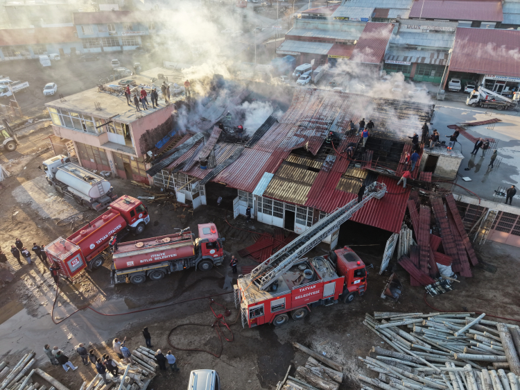 Bitlis'in Tatvan ilçesindeki sanayi sitesindeki bir kereste dükkanında çıkan yangın korkuttu.
