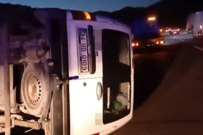 Bolu TEM Otoyolu’nda kontrolden çıkan hafif ticari araç, bariyerlere çarparak yan yattı. Sürücü kazayı yara almadan atlattı.