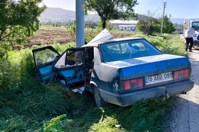 Burdur'da elektrik direğine çarpan Tofaş hurdaya döndü: 2 yaralı