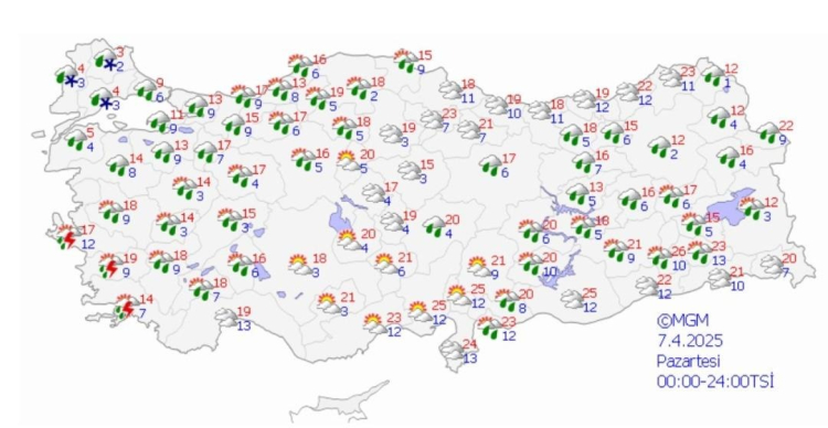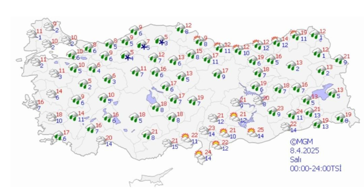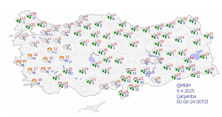 Ülkemiz genelinin parçalı ve çok bulutlu, İstanbul’un Anadolu yakası, Kocaeli ve Yalova çevreleri dışında kalan diğer bölgelerimizin aralıklı ve yerel olmak üzere yağışlı geçeceği tahmin ediliyor.