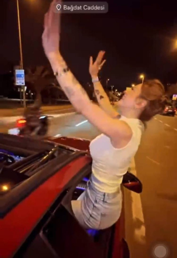 Kadıköy'de otomobil ile seyir halinde olan sürücü, camdan sarkarak direksiyonu ayağıyla kontrol etti. Sürücü ve otomobilde bulunan diğer 3 kişi, camdan sarkarak dans ettikleri anları cep telefonu kamerası ile kaydedip, sosyal medyada paylaştılar.