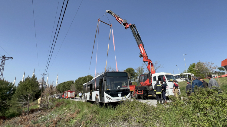 Çanakkale'de yoldan çıkan otobüste şoför mahsur kaldı