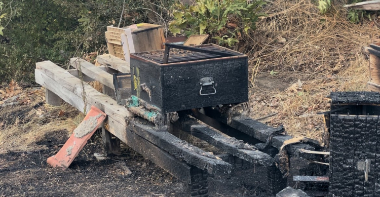 Çanakkale'deki orman yangınında arı kovanları alevlere teslim oldu