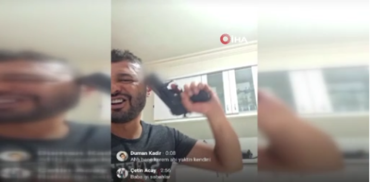 Sosyal medya hesabı üzerinden canlı yayın yapan 45 yaşındaki K.Y., elinde tabancayı şakağına dayadı.