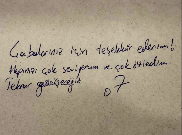 Yazdığı notta asker selamı işareti yapan "Jahrein" ismi ile bilinen Ahmet Sonuç "Çabalarınız için teşekkür ederim. Hepinizi seviyorum ve çok özledim. Tekrar görüşeceğiz" ifadelerinde bulundu.