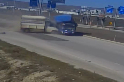 Çorum'un Alaca ilçesinde iki kamyonetin çarpışması neticesinde meydana gelen kazada 3 kişi yaralandı. Kaza, saniye saniye güvenlik kamerasına yansıdı.
