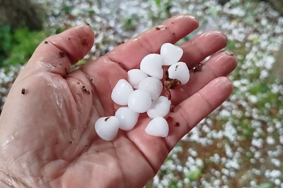 Çorum'un Osmancık ilçesinde fındık büyüklüğünde dolu yağdı. Dolu yağışıyla birlikte caddeler, sokaklar, bahçeler beyaza büründü. Caddeyi kaplayan suda mahsur kalan bir araç ise çevredekilerin yardımıyla bulunduğu yerden çıkartıldı.