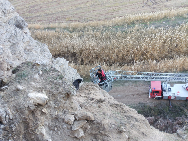 Çorum'da uçurumda mahsur kalan keçileri itfaiye kurtardı