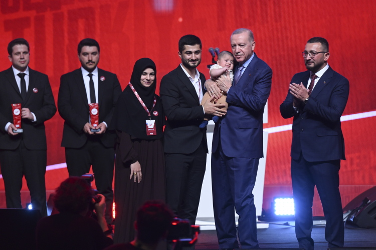 Türkiye Cumhurbaşkanı olarak ülke ve millet sevdalısı tüm gençlerle gurur duyduğunu dile getiren Erdoğan, "Burada bir kez daha görüyorum ki TEKNOFEST kuşağı maşallah gümbür gümbür geliyor. Gencecik mühendislerimiz, savunma sanayisinde adeta destan yazıyor. Gencecik zihinlerimiz bilimde, teknolojide, kültür ve sanatta başarıdan başarıya koşuyor, bu ülkenin güçlü yarınlarını hazırlıyor. Milli sporcularımız çok farklı branşlarda, dünyanın dört bir yanında İstiklal Marşı'mızı iftiharla okutuyor. Aklıselim, kalbiselim ve zevkiselim sahibi bu gençliğin Türkiye Yüzyılı'nın da mimarı, mihmandarı ve yol başçısı olacağına yürekten inanıyorum. Rabb'im başarılarınızı daim, bahtınızı açık eylesin diyorum. Ülkemize ve milletimize yaptığınız ve yapacağınız katkılardan ötürü her birinize teşekkür ediyorum." şeklinde konuştu.