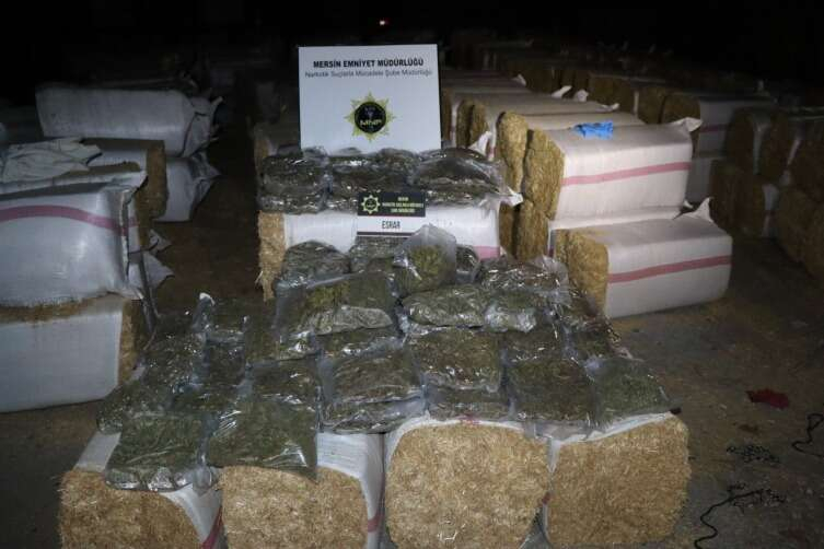 Mersin'de 32 kilo 600 gram esrar ele geçirilen saman yüklü tırın sürücüsü gözaltına alındı.