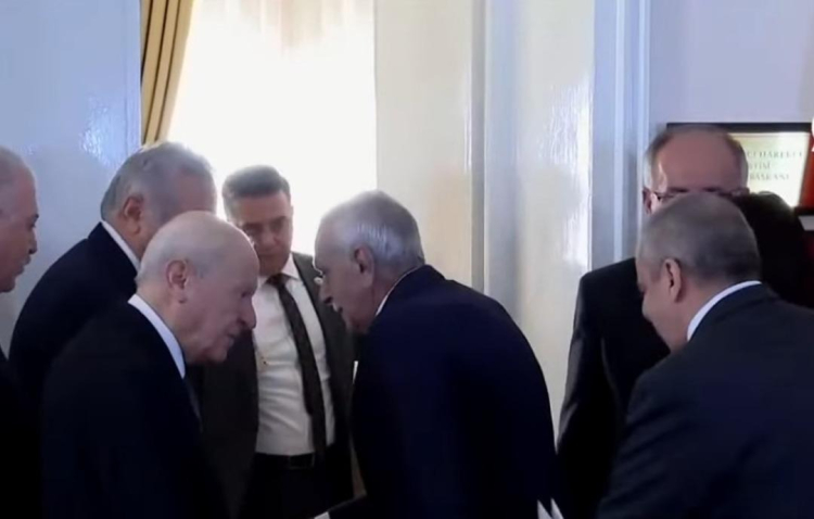 Bahçeli DEM Parti heyetini kapıda karşıladı. Görüşme yaklaşık 40 dakika sürdü. Görüşmenin ardından ise bir açıklama gelmesi beklenmiyor.