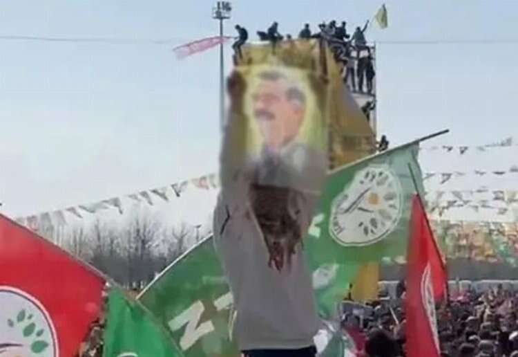 DEM Parti'nin Nevruz etkinliğinde terör elebaşı Öcalan'ın posterleri açıldı
