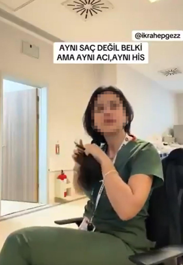 Hastanede saçını ördüğü videoyu paylaşan hemşire, dün gece saatlerinde gözaltına alındı.