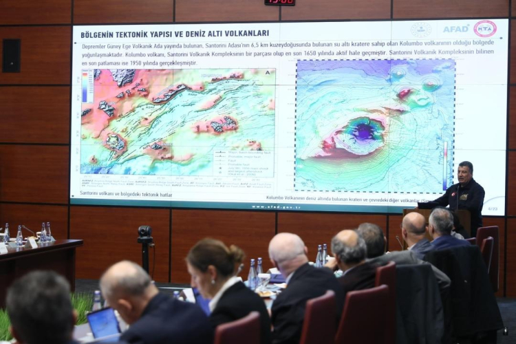 İçişleri Bakan Yardımcımız Sayın Münir Karaloğlu başkanlığındaki değerlendirme toplantısında; Ege Denizi Santorini Adası ve civarında 28 Ocak 2025 tarihinden itibaren görülen sismik aktivite sonucu meydana gelebilecek muhtemel daha büyük bir deprem, tsunami veya bir volkanik patlamanın ülkemiz kıyıları için oluşturabileceği tehlikeler, alınan önlem ve hazırlıklar AFAD, MTA, Meteoroloji Genel Müdürlüğü, Kandilli Rasathanesi ve Deprem Araştırma Enstitüsü, uzman bilim insanları ve araştırmacılarla değerlendirildi.