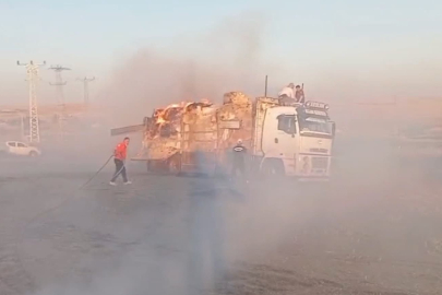 Diyarbakır'ın Silvan ilçesinde kamyonda alev alan saman balyaları vatandaşlar ve itfaiye ekiplerinin müdahalesiyle söndürüldü.