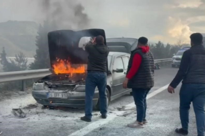 Anadolu Otoyolu'nda motor kısmından alev alan otomobildeki yangını, diğer sürücüler ve jandarma ekipleri söndürdü.