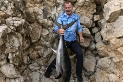 Edirne'de amatör balıkçı kıyıdan attığı oltayla 30 kiloluk orkinos yakaladı