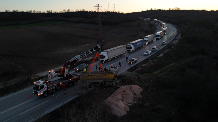 Kazada yan yatan kamyonu kurtarma çalışmaları sırasında Bulgaristan’a açılan Hamzabeyli Sınır Kapısı yönüne giden ihracat tırları ile Edirne istikametine seyreden araçlar yolda uzun kuyruklar oluşturdu. Hafriyat kamyonunun vinç yardımıyla olay yerinden kaldırılmasının ardından uluslararası yol yeniden trafiğe açılırken, jandarma ve polis ekipleri kazayla ilgili inceleme başlattı.