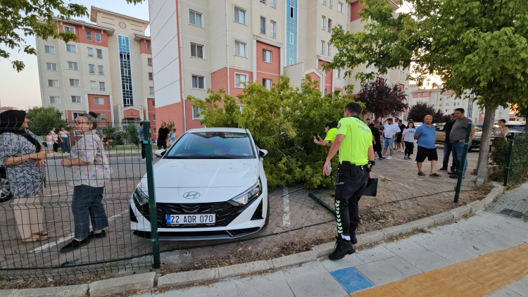 Edinilen bilgiye göre, Fatih Mahallesi'nde, Prof. Dr. Türkan Saylan Bulvarı'ndan Naim Süleymanoğlu Caddesi'ne doğru seyir halinde olan M.Z. idaresindeki yaptığı 22 ADP 004 plakalı ticari araç, döner kavşağa geldiği sırada kontrolden çıkarak TOKİ konutları D bloklarının site bahçesine girdi. Araç, park halindeki 10 ACA 727 plakalı park halindeki otomobile çarptı. Çarpmanın etkisiyle park halindeki araç bulunduğu yerden kayarken, bahçedeki bir ağacın devrilmesi sonucu 22 ADR 070 plakalı otomobil de zarar gördü. Kazada yaralanan olmazken, olay yerine gelen trafik ekipleri inceleme yaptı. Kaza anı sitenin güvenlik kameralarına yansıdı.