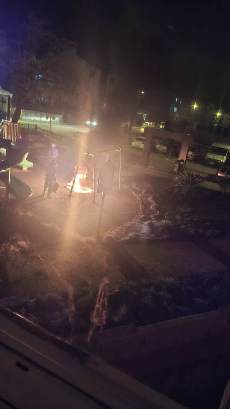 Edirne Keşan’da çocuk parkında yakılan ateş oyun gruplarına zarar verdi