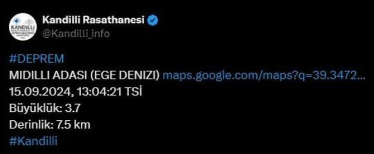 Saat 13.04 sıralarında Ege Denizi'nde bir deprem meydana geldi.