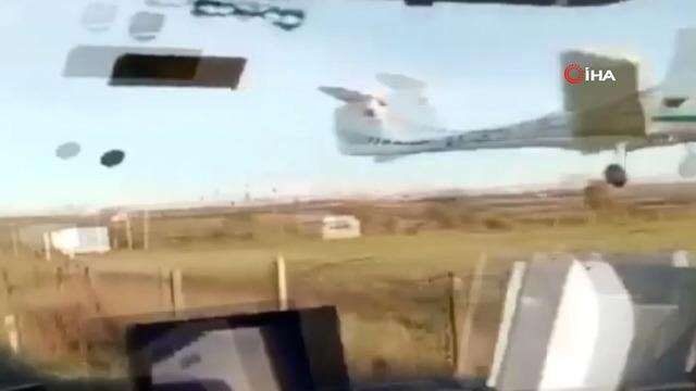 Eğitim uçağı, minibüsü teğet geçti! ‘Çarpışacağız’ dedi ve…