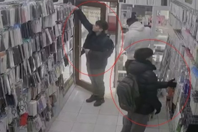 Güvenlik kameralarına yansıyan görüntülerde, şüphelilerden birinin çalışanları oyalarken diğerinin raflardaki ürünleri çaldığı anlar net bir şekilde görüldü.
