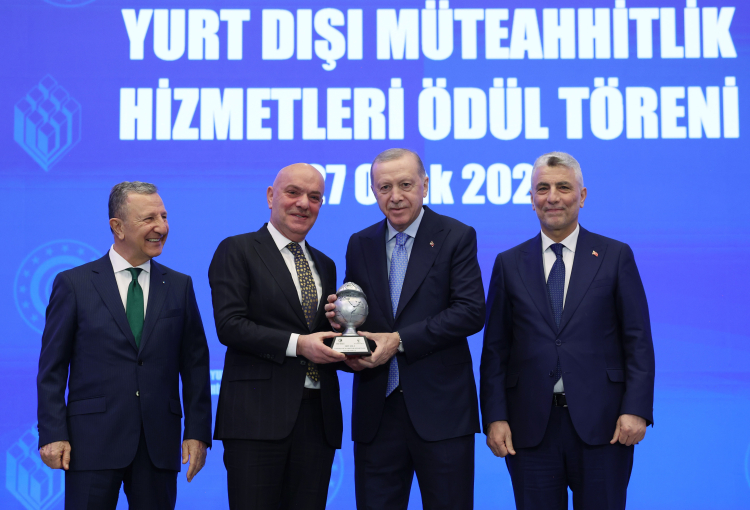 Yurt dışı müteahhitlik ve teknik müşavirlik sektörünün Türkiye’nin adını dünyanın dört bir ucunda projeleriyle duyurmaya devam ettiğini söyleyen Cumhurbaşkanı Erdoğan, "Türk müteahhitleri aynı zamanda güçlü mühendislik birikimimizi, iş yapma kültürümüzü ve güvenilirliğimizi de dünyanın farklı ülkelerine taşıyor. Türk inşaat şirketleri son yıllarda yurt dışında gerçekleştirdiği projelerle dünyanın en prestijli firmaları arasında yer almayı başarmışlardır. Firmalarımızın iş disiplini, örnek iş ahlakı ve kalite anlayışı şirketlerimizi küresel ölçekte aranan iş ortakları haline getirmiştir. Türk inşaat sektörünün 1972 yılında başlayan yurt dışı faaliyetleri aradan geçen 54 yılda başarıdan başarıya koşarak bugün hepimizi gururlandıran bir seviyeye ulaşmıştır. Şimdiye kadar yüzde 90'ı bizim iktidarlarımız döneminde olmak üzere dünyanın 138 ülkesinde 12 bin 816 proje kapsamında 557 milyar dolardan fazla iş almış durumdayız. Yakaladığımız bu ivmeyi küresel ekonomideki olumsuzluklara rağmen hamdolsun kararlı bir şekilde sürdürüyoruz" diye konuştu.
