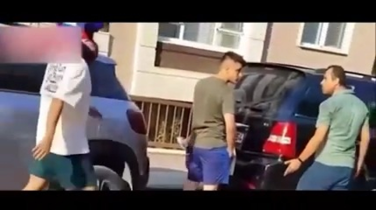 Kucağında bebeği olan babaya saldıran maganda trafiği de hiçe saydı. Diğer sürücülerin de dahil olduğu tartışma kayıt altına alındı.