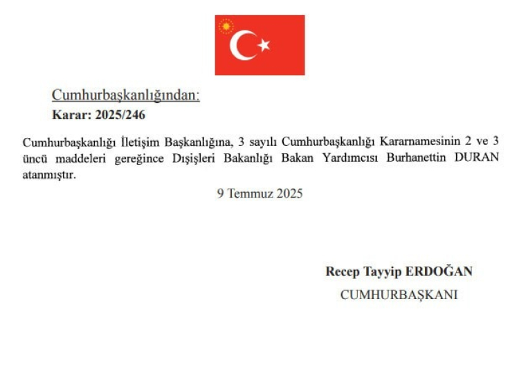 Altun'dan boşalan Cumhurbaşkanlığı İletişim Başkanlığı koltuğuna ise Dışişleri Bakan Yardımcısı Burhanettin Duran getirildi.