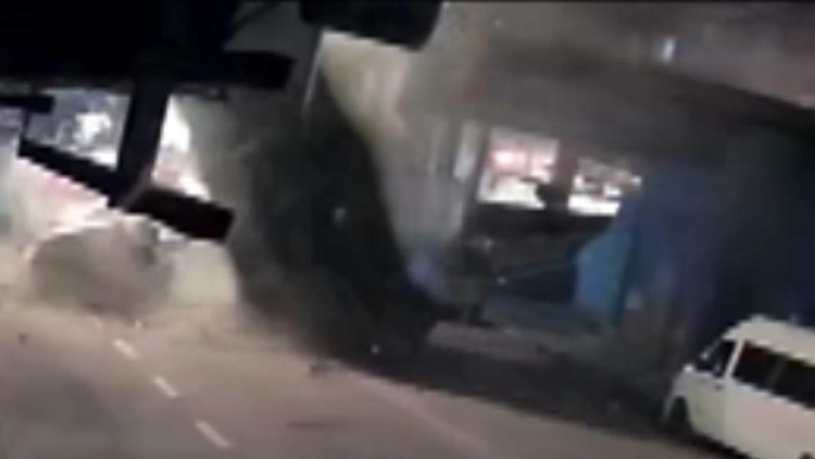 Görüntülerde kamyonun önüne kattığı araçlarla köprüden aşağı uçması yer alıyor. O esnada yoldan geçen bir otomobilin yukarıdan düşen araçların altında kalmaktan son anda kurtulduğu gözlendi.
