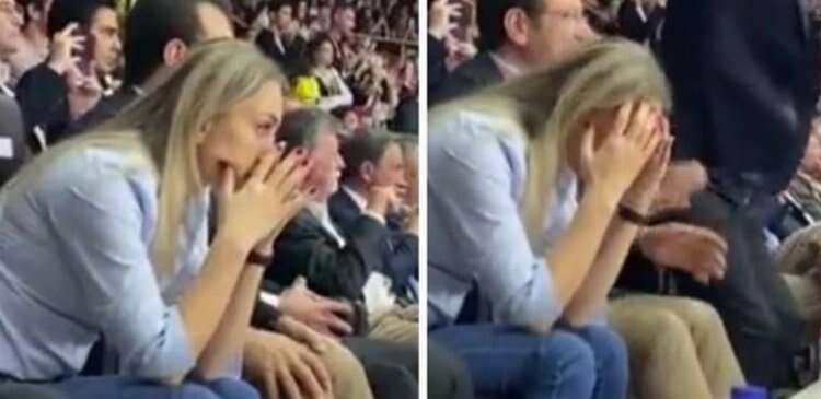 Fenerbahçe Opet'in şampiyon olmasıyla birlikte, Dilek İmamoğlu'nun üzüldüğü anlar kameralara yansıdı. Öte yandan Ekrem İmamoğlu ise o anlarda alkış tuttu.