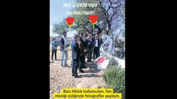 Küçük Narin'in ölümü, sosyal medyada içerik malzemesi oldu. Narin'in mezarına giden bazı tiktok kullanıcıları, fon müziği eşliğinde fotoğraflar paylaşırken, dua ederek çiçek bıraktıkları videolar çektiler. Kullanıcıların videoları ise milyonlarca görüntülenme aldı.