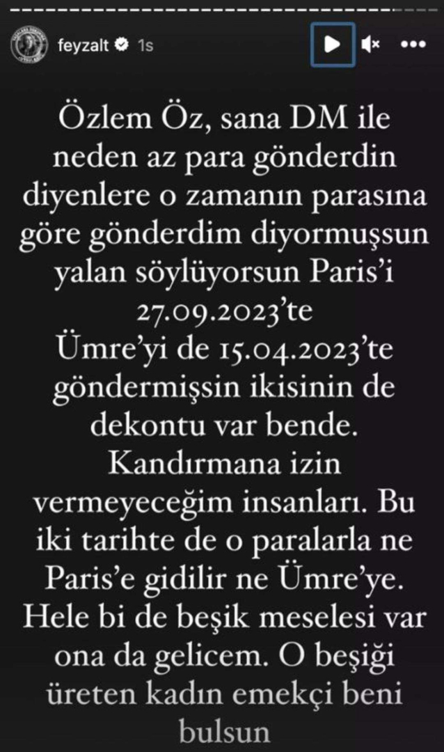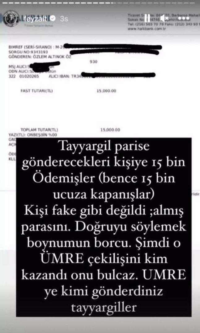Özlem Öz ve Dr. Tayyar Öz çiftinin Paris çekilişini kazanan takipçilerine 15 bin TL gönderdiklerini iddia eden Feyza Altun bu durumla dalga geçti.