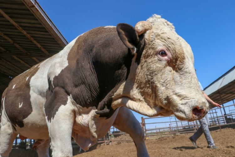 Gaziantep'te 1,3 tonluk boğa alıcısını bekliyor