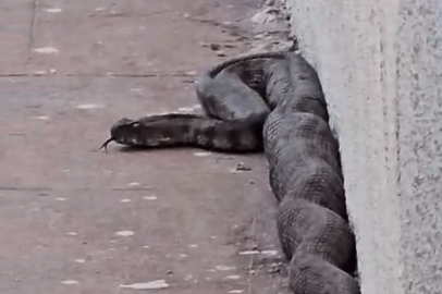 Gaziantep'in Şahinbey ilçesinde bir sitede ortaya çıkan yılan, mahalle sakinlerinde paniğe neden oldu.