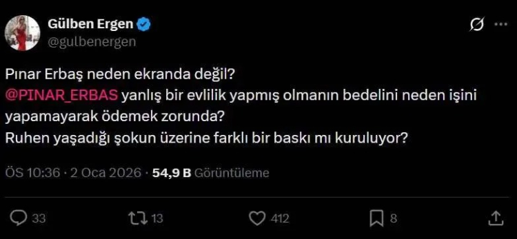 Gülben Ergen, sosyal medyadan yaptığı paylaşımla Pınar Erbaş'ın neden ekranlarda olmadığını sordu.