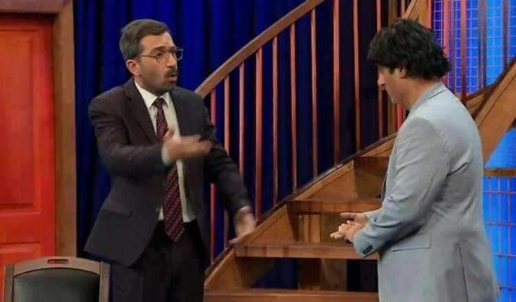 CHP içerisindeki tartışmaların ve seçim sürecinde yaşananların anlatıldığı skeçte "Parti lideriniz nerede?" diye soran karaktere lider masaya vurarak "Burdayım be! Burdayım, burdayım" diye yanıt verdi.